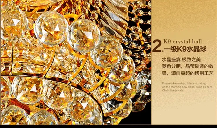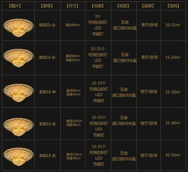 Luxury Continental Circular Golden Living Room Lobby Restaurant Crystal Hotel Decoration Elegant Ceiling Lamp Ceiling Chandelier