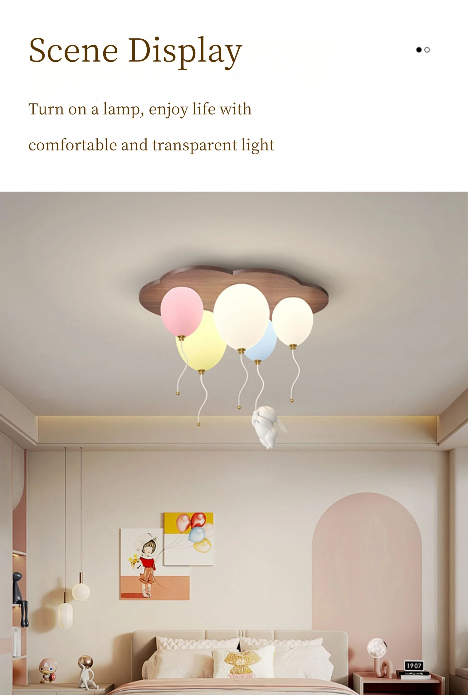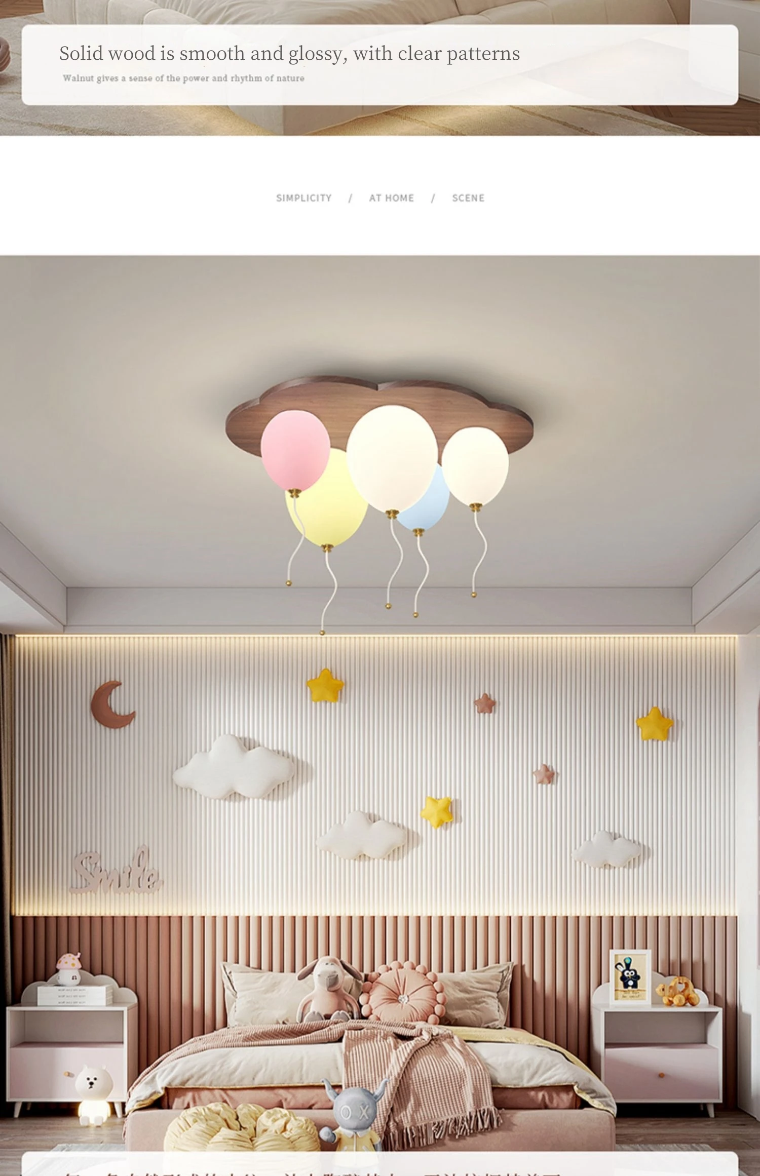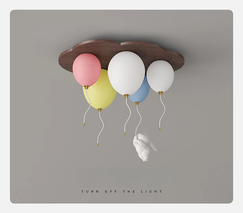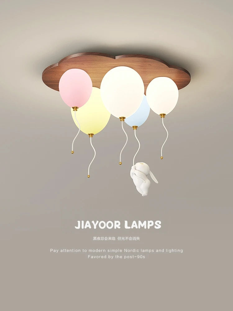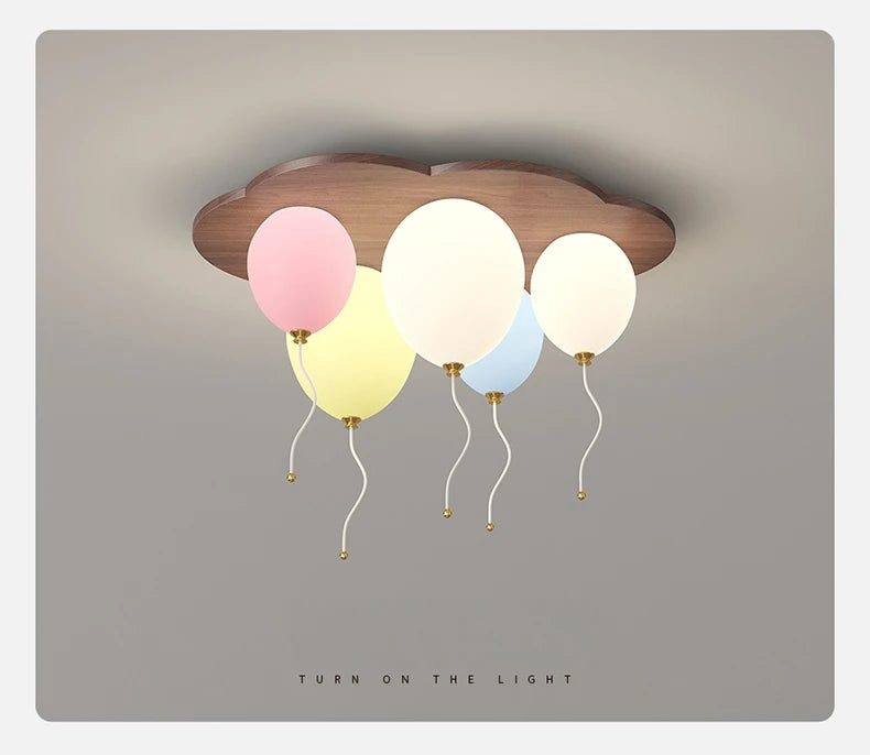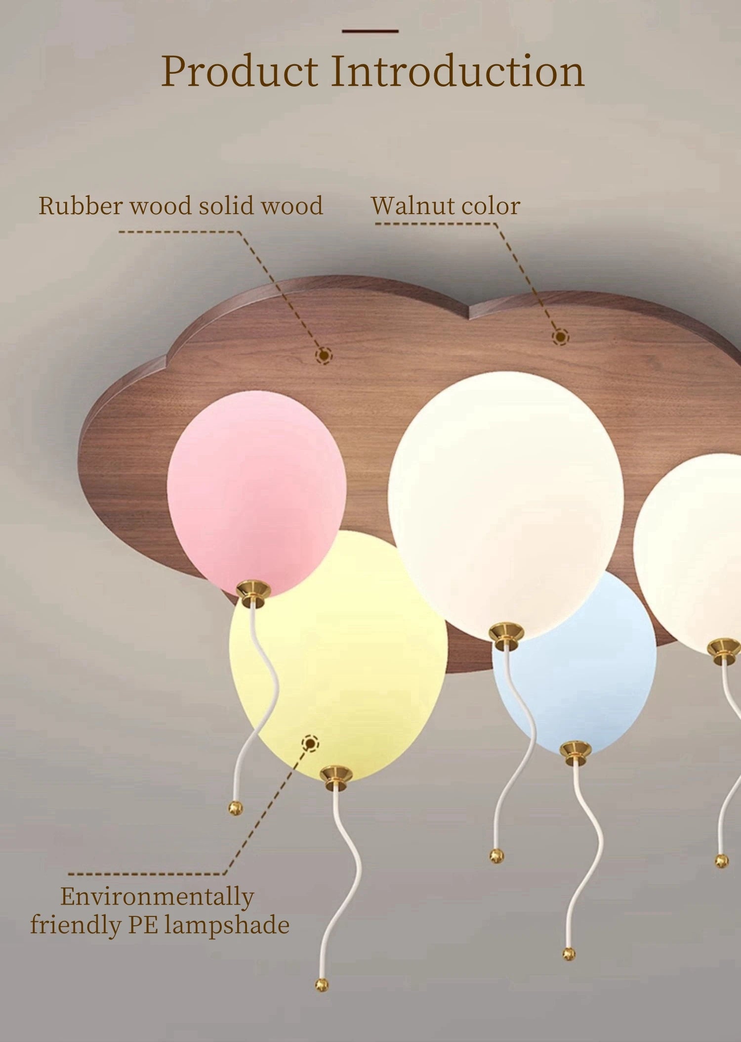 Modern Balloon LED Ceiling Lights Wooden For Children's Room Decoration Baby's Boy Girl Bedroom Lustre Creative Chandelier Lamp