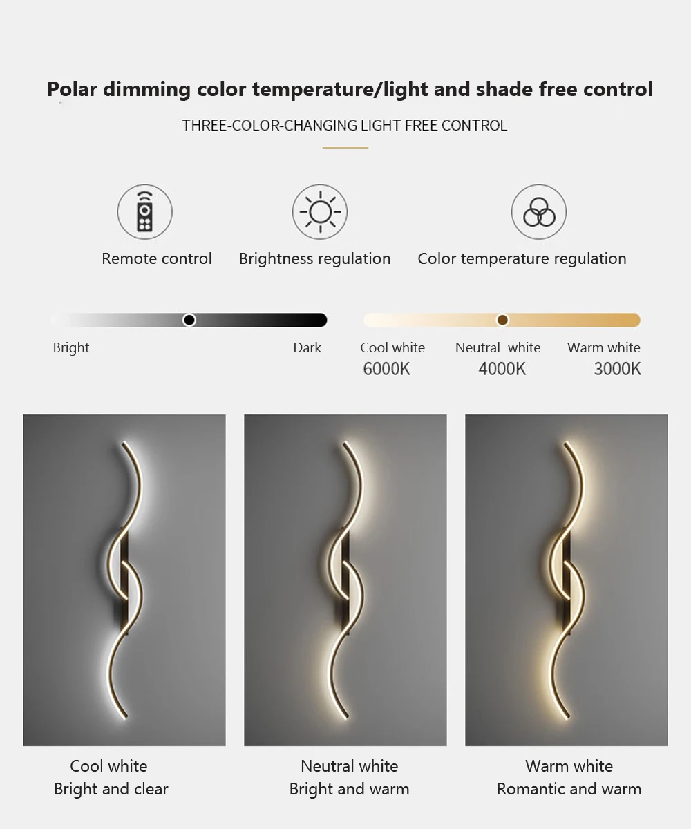 The "Remote Control" delivery remote control allows you to control the lighting fixtures and switch between different color temperatures and brightness levels of white light, warm light, and neutral light through the remote control.