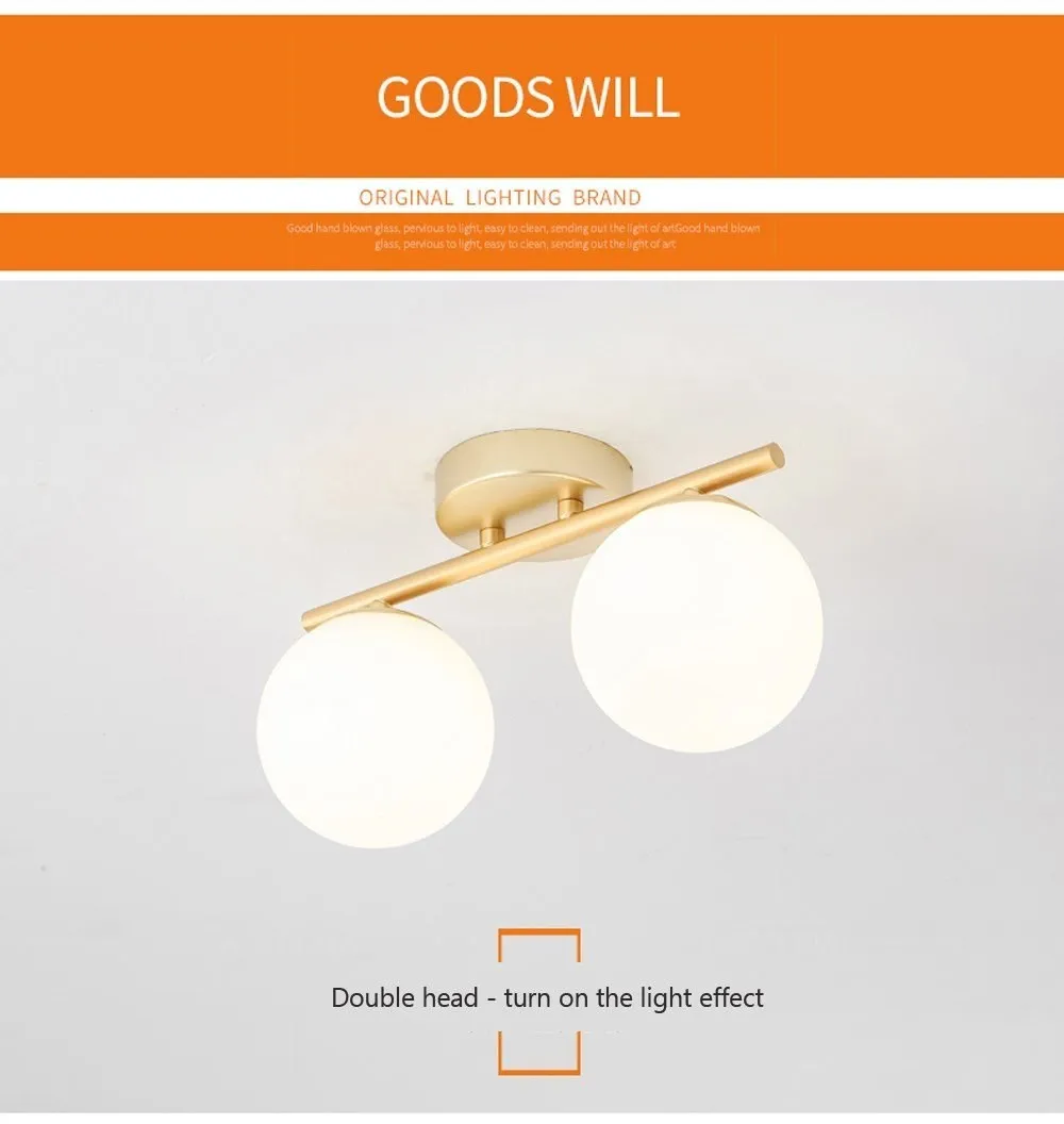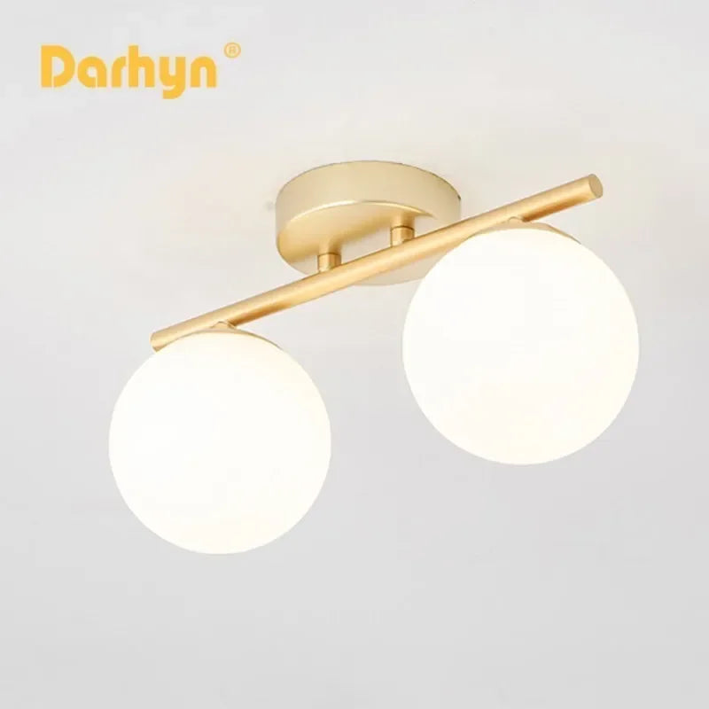 Nordic Glass Ceiling Light LED White Ball Creative Golden Corridor Lamp Entrance Cloakroom Balcony Bedroom Dining Room Lighting
