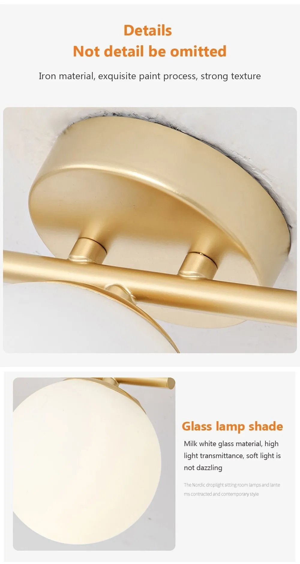 2. Iron plus round glass shade, high brightness LED light source to light up your life.