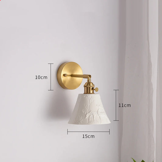 Elk Ceramic Lampshade LED Wall Lamps Sconce Copper Pull Chain Bedroom Bathroom Mirror Light Nordic Modern Lighting Lampara Pared